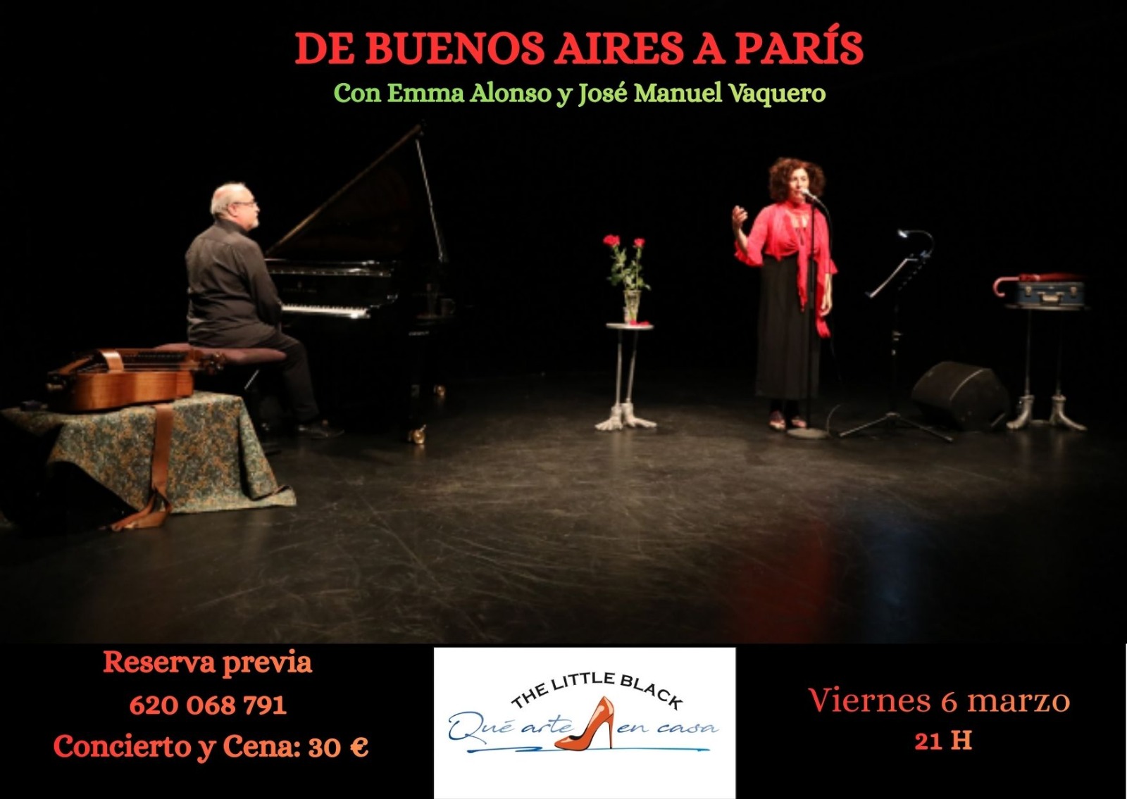 Vive una velada única que combina música y gastronomía en un viaje sensorial de Buenos Aires a París. La voz de Emma Alonso acompañada al piano por José Manuel Vaquero interpretan un exquisito programa de clásicos y melodías emblemáticas que evocan el romanticismo porteño y el encanto parisino. Tras el concierto, disfruta de una cena gourmet cuidadosamente diseñada para complementar la experiencia musical, con sabores que transportan tu...