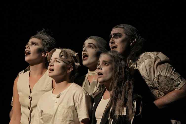 Una propuesta escénica de teatro, circo y clown engarza el destino de Calisto y Melibea.  En una suerte de acrobacias, malabares y expresión corporal, La Escalera de Tijera teje a ritmo de comedia uno de los grandes clásicos de la literatura española. La desigualdad de clases, personificada en la corrompida lealtad de los criados, una Celestina alcahueta que utiliza la desventura y el sufrimiento de los amos para enriquecerse...