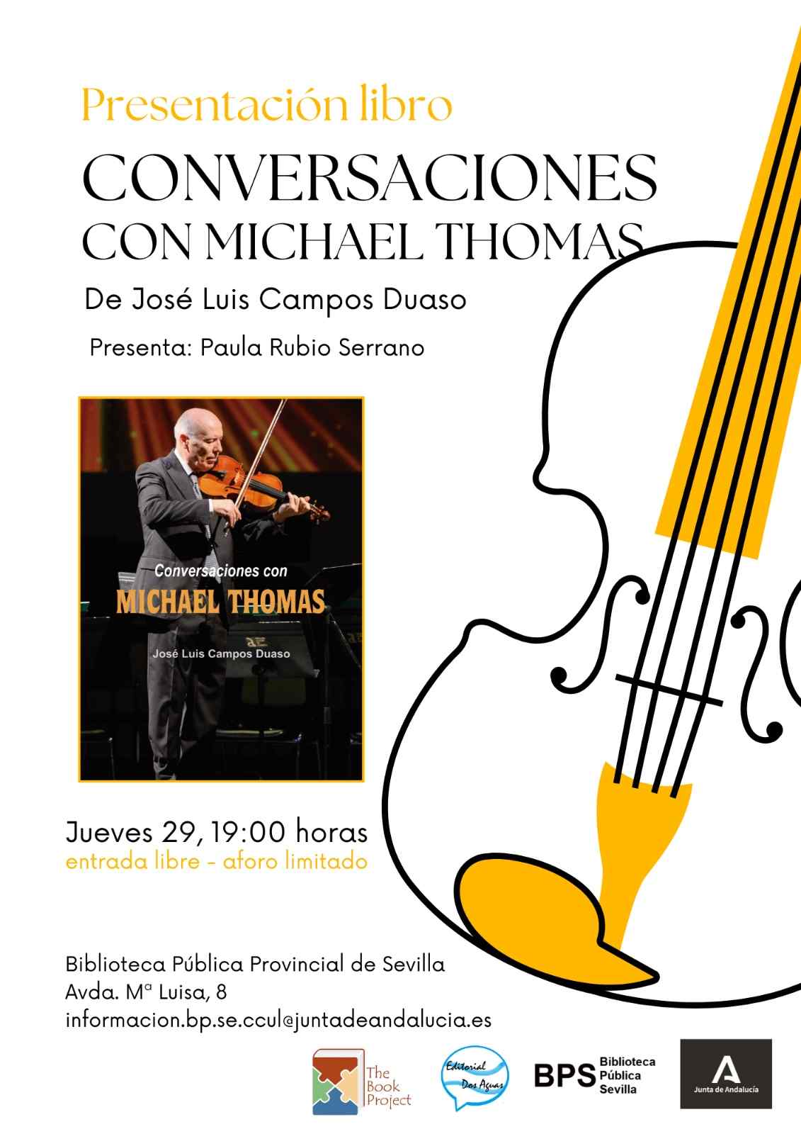 El acto contará con la presencia del autor y será presentado por Paula Rubio Serrano, representante de ese relevo generacional que el propio libro reivindica. Estudiante de Arquitectura y de Estudios Superiores de Música en Sevilla, que encarna un perfil multidisciplinar y un firme compromiso cultural, valores que Michael Thomas ha promovido de manera constante a lo largo de su carrera.