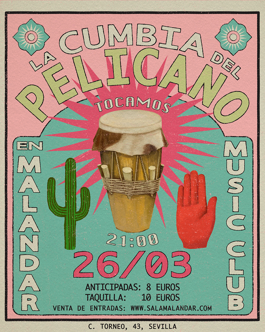 La banda Cumbia del Pelícano, con base en Sevilla, presenta en concierto una propuesta musical centrada en la cumbia y en la fusión de ritmos tropicales. El grupo desarrolla un repertorio que parte de la tradición de la cumbia colombiana y la amplía con influencias diversas procedentes de los contextos culturales de sus integrantes.