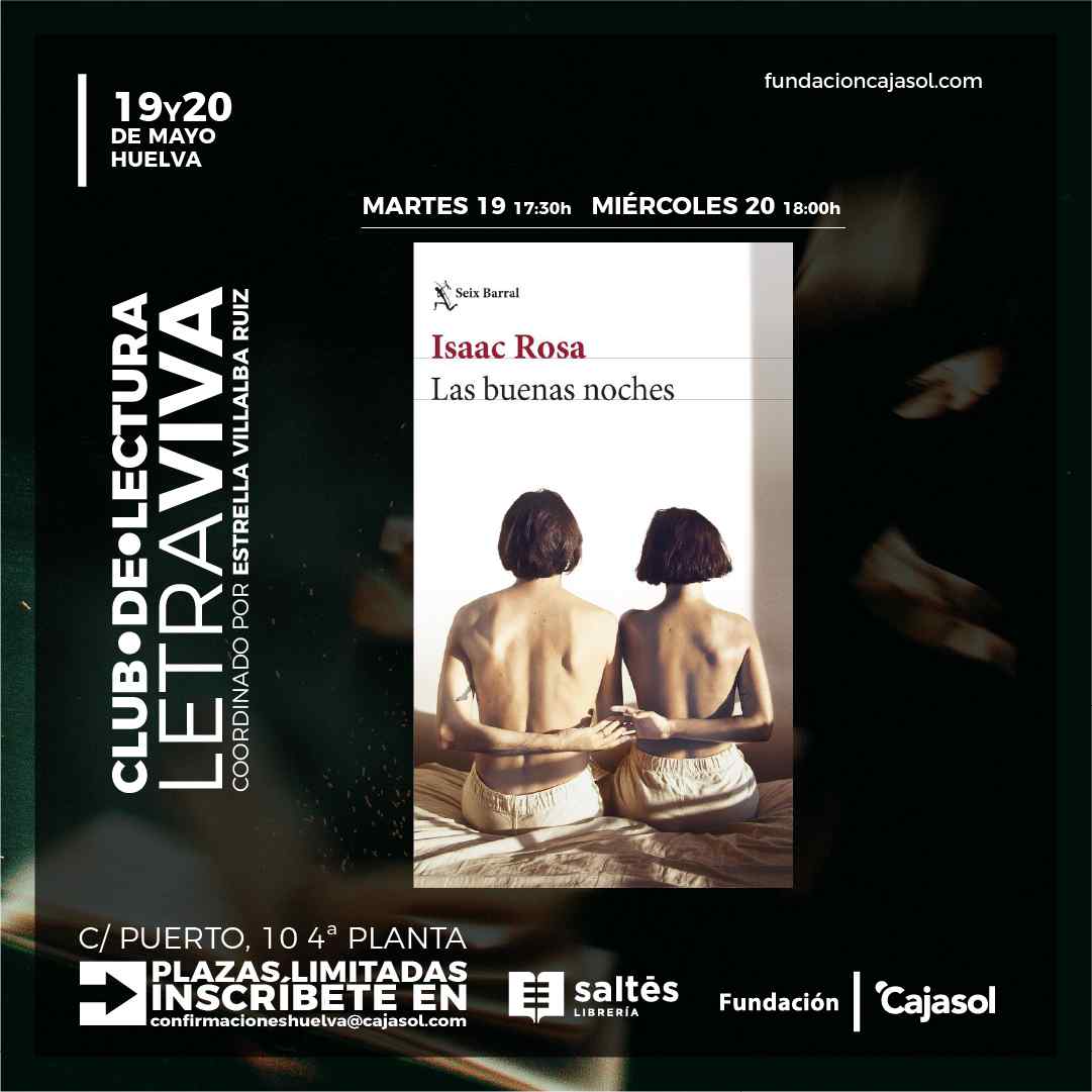 La Fundación Cajasol celebra una nueva sesión del Club de Lectura Letra Viva, un espacio dedicado al diálogo y la reflexión en torno a obras contemporáneas. En esta ocasión, el grupo aborda Las buenas noches, de Isaac Rosa, una novela que sirve como punto de partida para el análisis compartido entre los participantes.