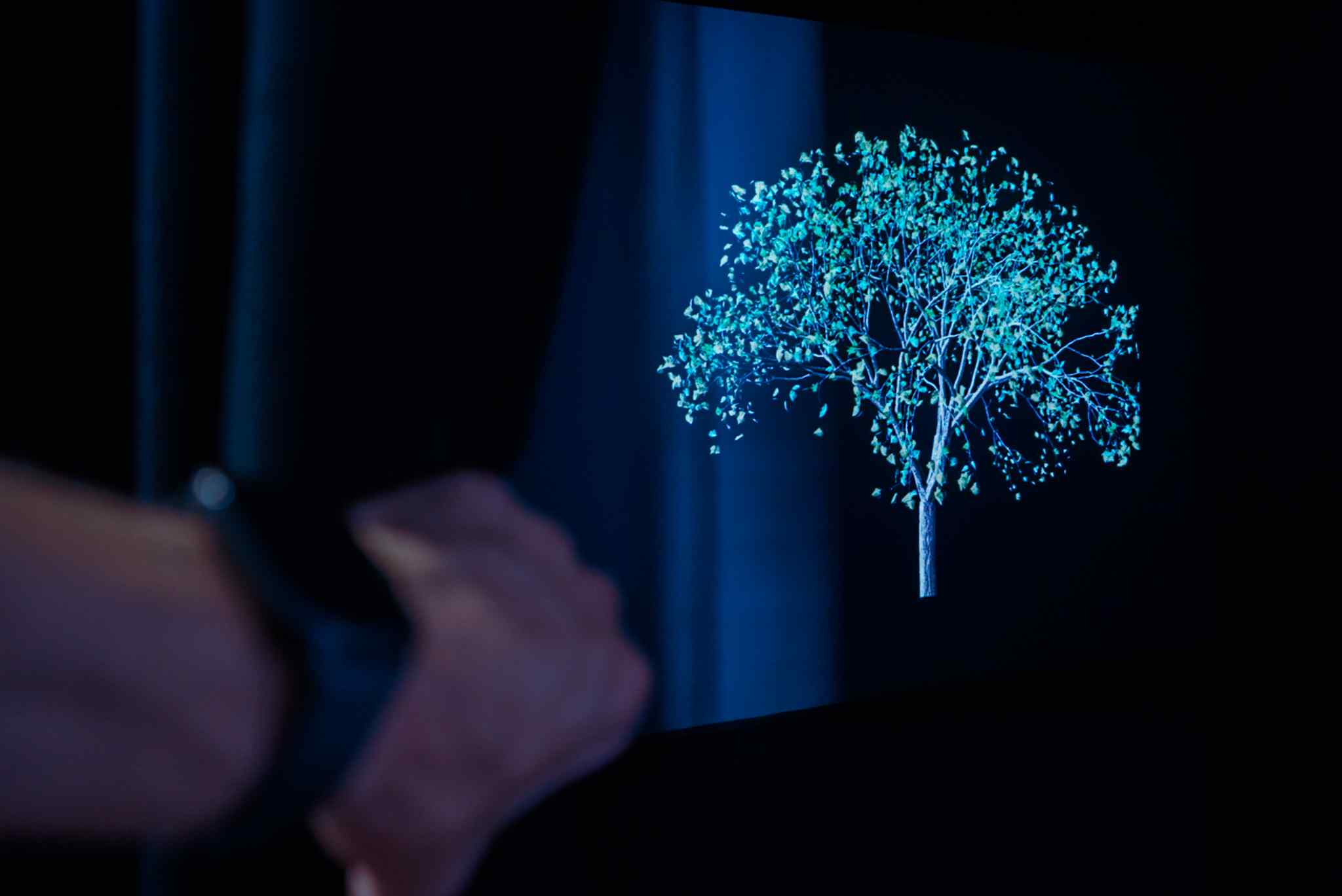 Una hipnótica instalación digital de la artista estadounidense Jennifer Steinkamp (Denver, 1958), pionera en el uso de la animación digital y la proyección como medio artístico. En esta obra, árboles virtuales giran en un movimiento constante, como impulsados por un viento invisible, evocando la danza ritual de los derviches sufíes. El resultado es un espacio inmersivo donde la naturaleza se convierte en experiencia digital, uniendo espiritual...