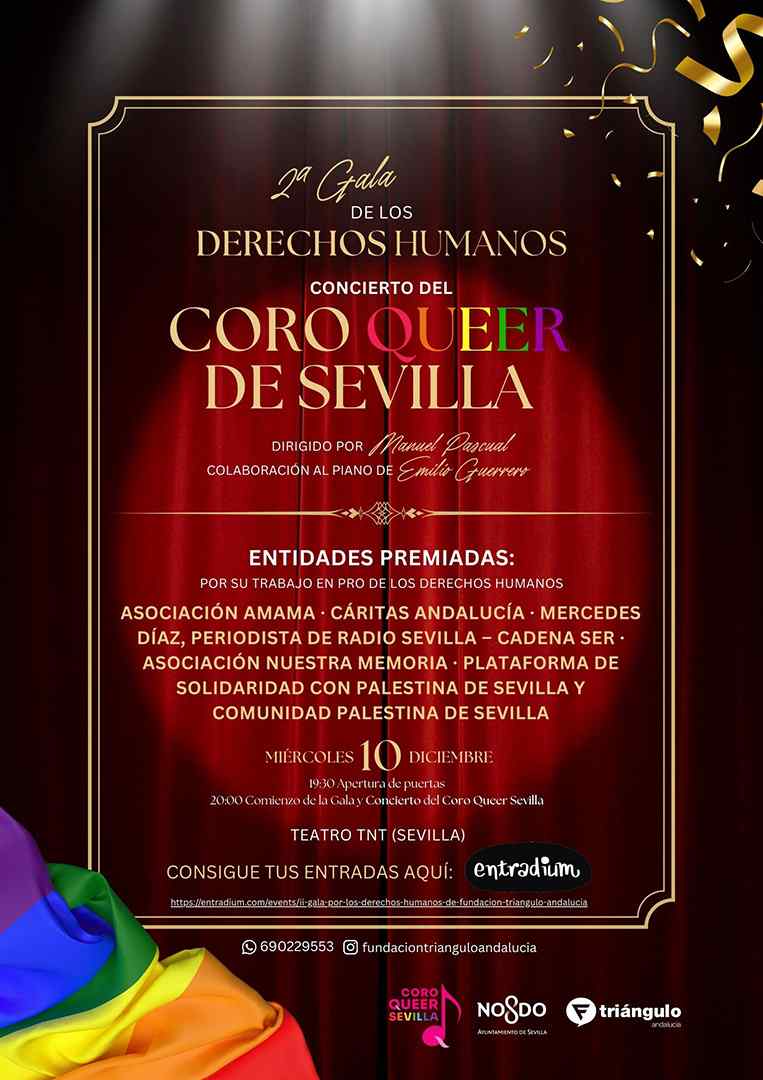 Con motivo del Día Mundial de los Derechos Humanos, Fundación Triángulo Andalucía organiza la II Gala por los Derechos Humanos en el Teatro TNT-Atalaya de Sevilla. En un tiempo marcado por la incertidumbre, la polarización y el aumento de discursos que erosionan principios básicos de convivencia, la defensa de los derechos humanos vuelve a situarse en el centro del debate social. Desde la Fundación Triángulo Andalucía se subraya la necesidad d...