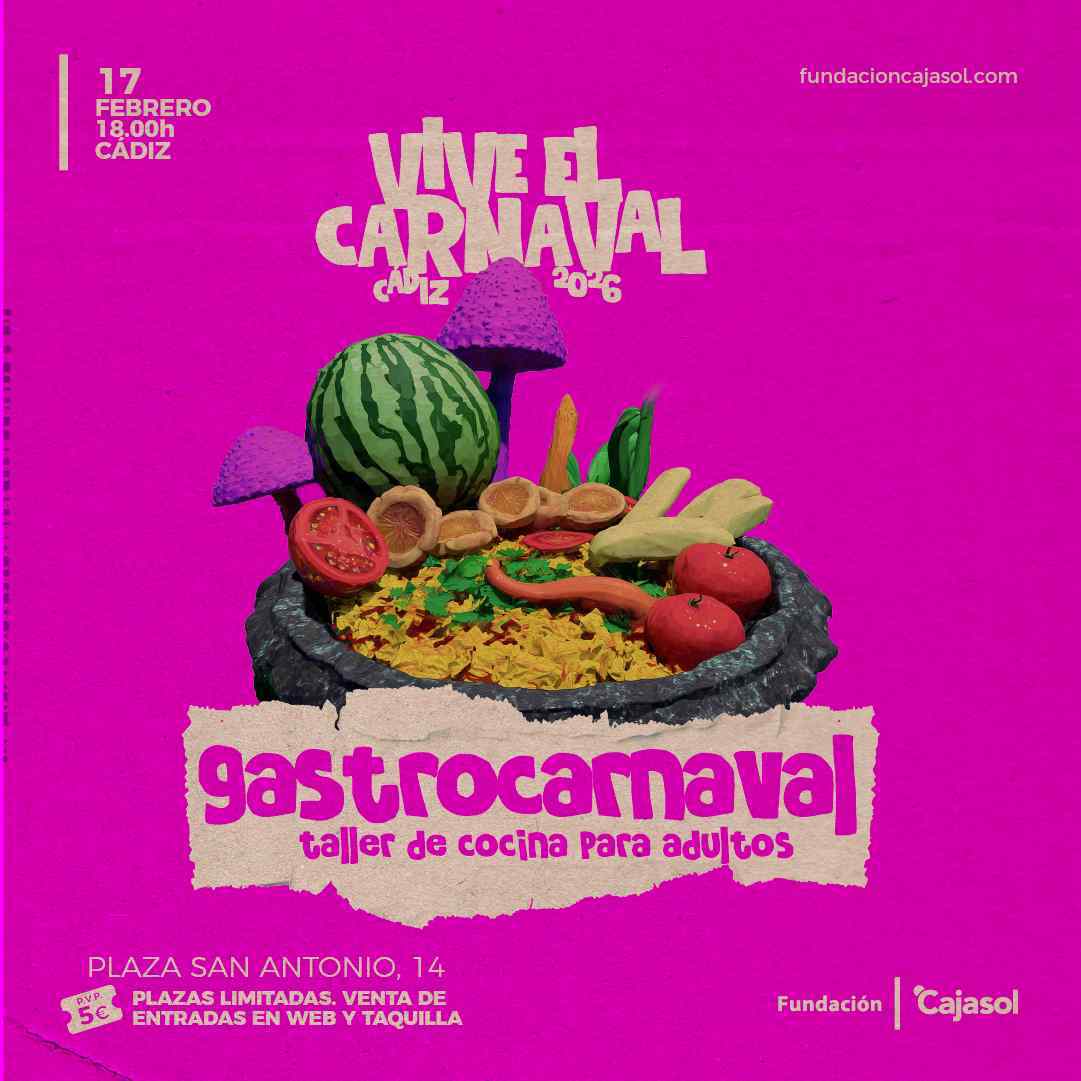 La Fundación Cajasol anuncia una nueva actividad correspondiente a su ciclo de «Vive el Carnaval de Cádiz 2026». En esta ocasión, el Taller de Cocina para Adultos «Gastrocarnaval».