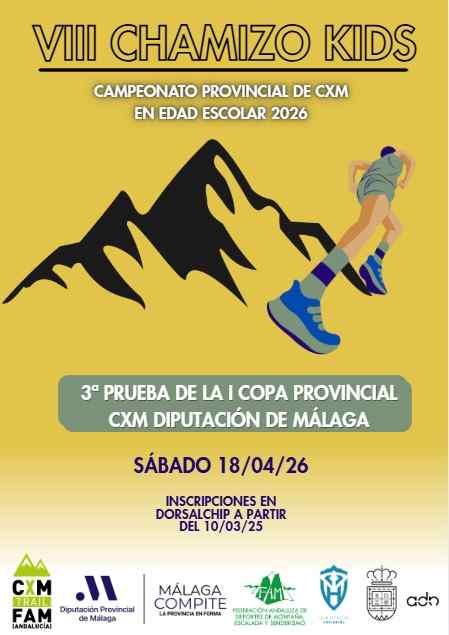 El Ayuntamiento de Villanueva del Rosario, en colaboración con el Club Deportivo Hondonero, organiza el próximo 18 de abril de 2026 el VIII Chamizo Kids, una prueba de carreras por montaña dirigida a niños y jóvenes que se celebrará en la explanada de la Ermita de la Virgen del Rosario a partir de las 10:00 horas.