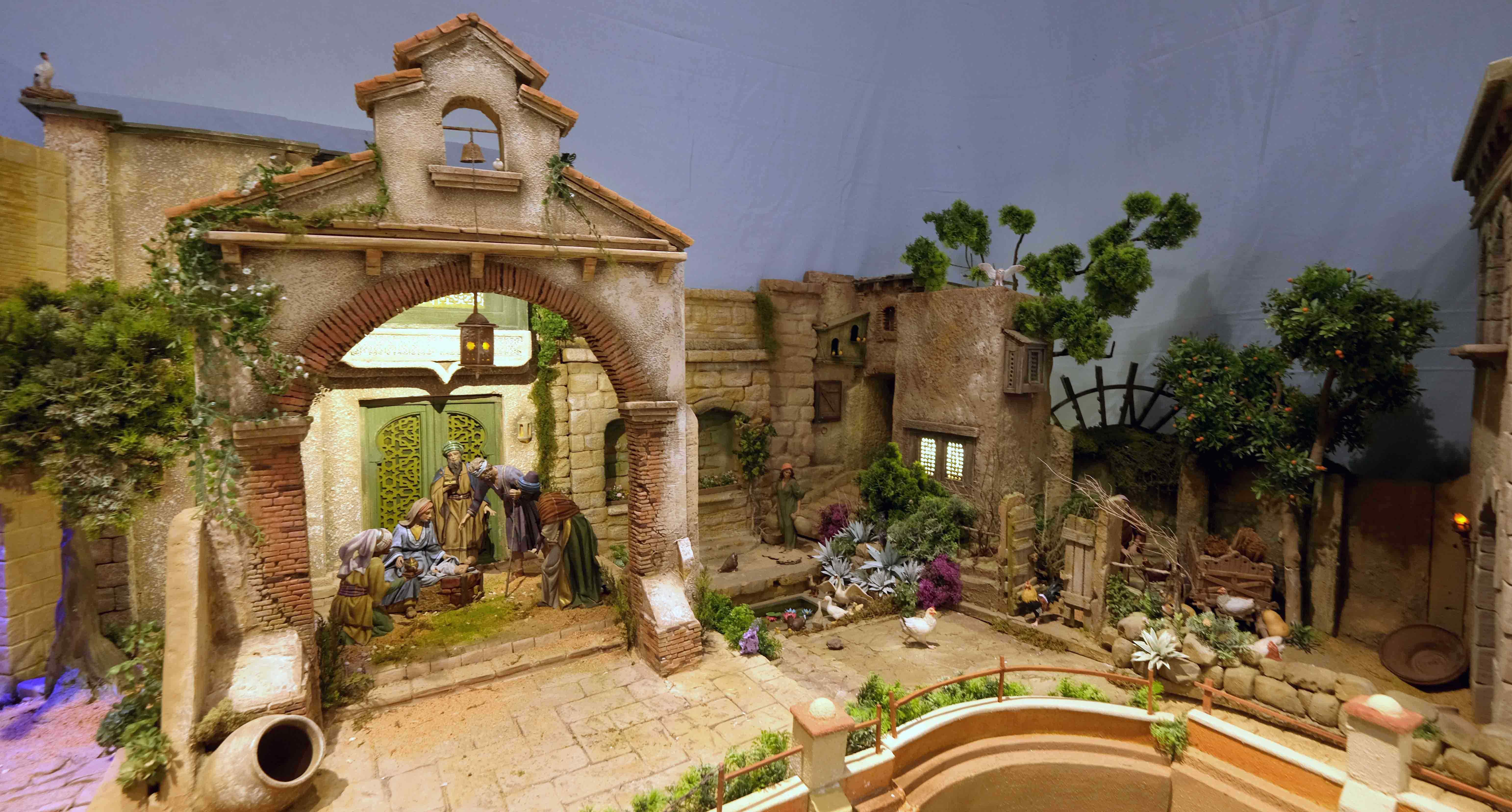Almería: Belén tradicional artesanal de José Manuel de Haro Pérez titulado “La sencillez de lo cotidiano”, con figuras de José Luis Mayo Lebrija y Hermanos Cerrada, mostrando un pueblo hebreo de estilo sobrio y diorama con iluminación simulando día y noche.