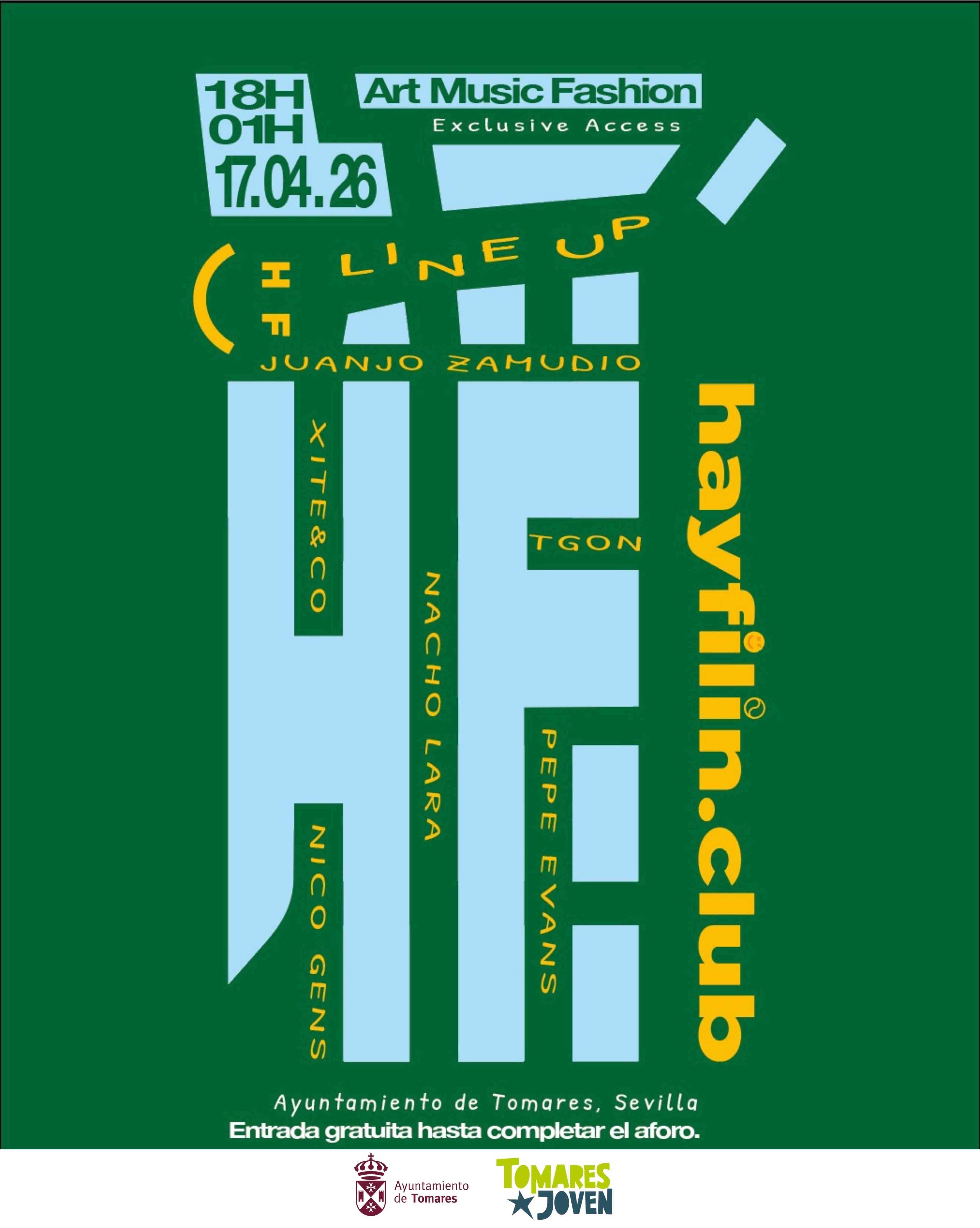 Organizado por el Ayuntamiento de Tomares a través de su concejalía de Juventud (TomaresJoven), el HayFilin ofrecerá una experiencia única (Art Music Fashion), en la que el arte, la música y la convivencia se darán la mano en un entorno emblemático, consolidando a Tomares como punto de referencia dentro del circuito internacional de eventos musicales.